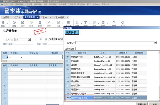 管家婆財(cái)工貿(mào)版本新推出插件【生產(chǎn)任務(wù)單/加工單拆分】,支持生產(chǎn)任務(wù)單和委外加工單拆分管理,方便用戶隨時(shí)調(diào)整。
