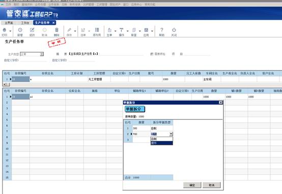生產(chǎn)任務(wù)單可以拆分成自制(生產(chǎn)任務(wù)單)和委外(委外加工單)