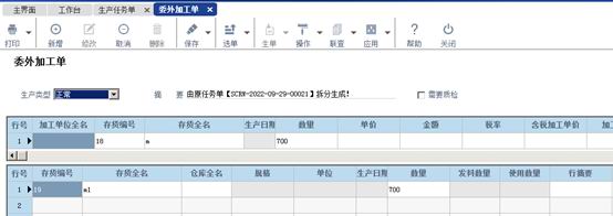 注:委外加工單只能拆分成委外加工,不能拆分成生產(chǎn)任務(wù)單。